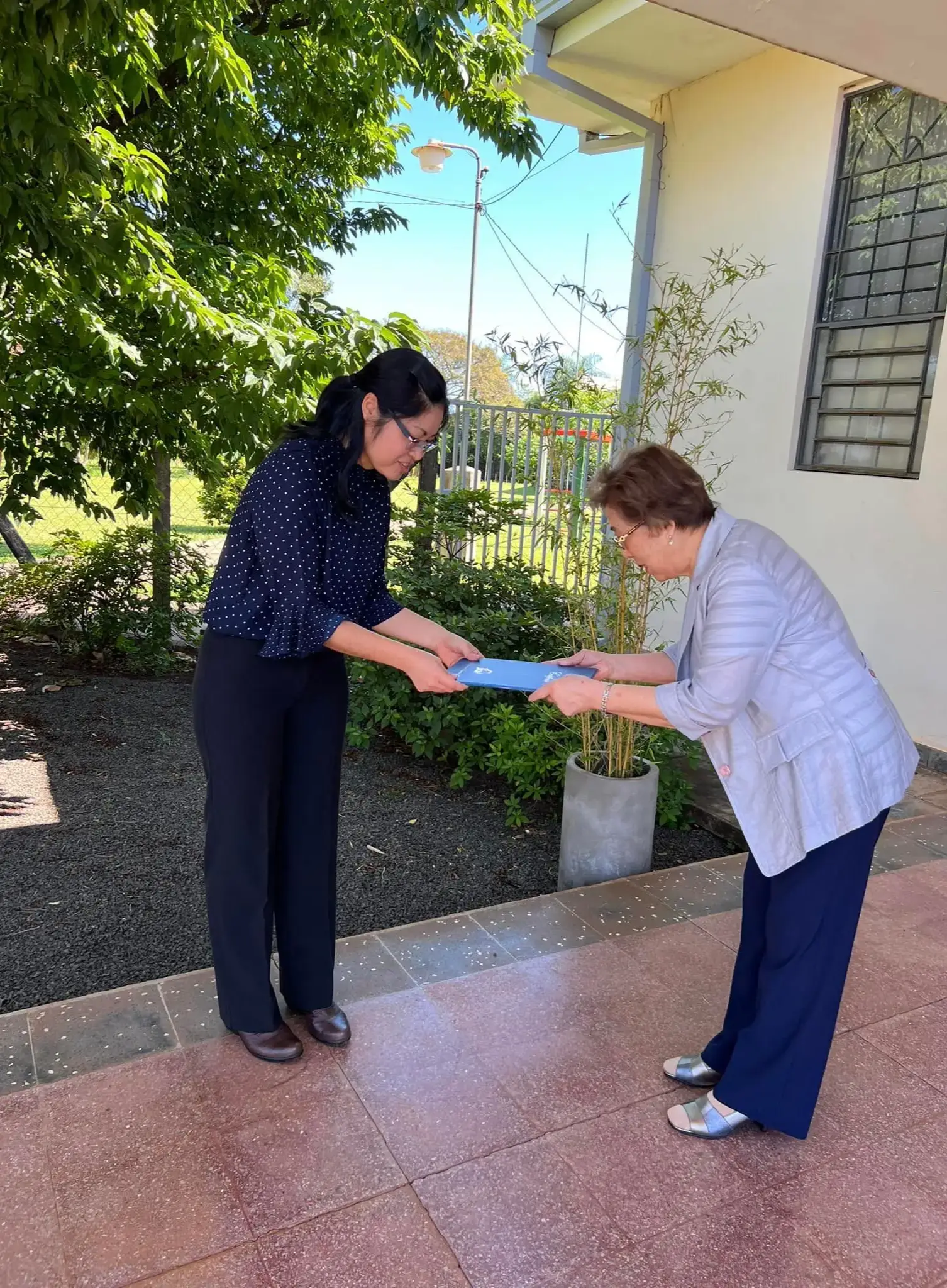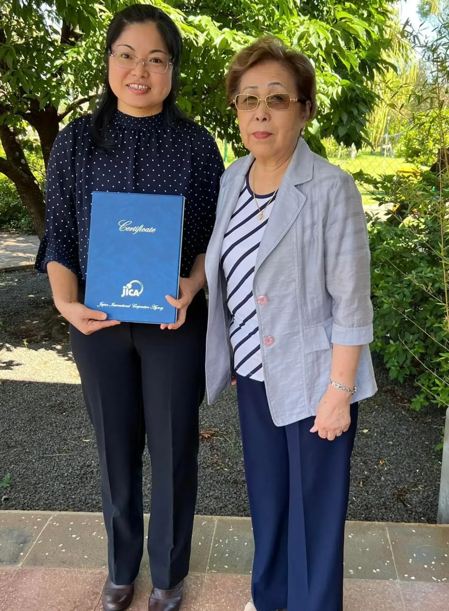 Las señoras Yumiko Akagi de Mitsui y Miyako Sawaguchi de Inoue, recibieron sus respectivos Certificados por haber culminado exitosamente el curso online sobre las atenciones que deben tener los adultos mayores.
