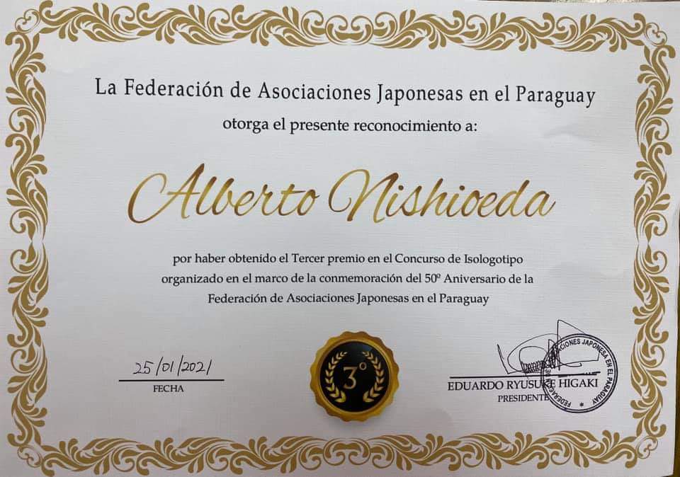 El 26/02/2021, el socio ALBERTO YIRO NISHIOEDA, ha recibido el reconocimiento de la FEDERACIÓN DE ASOCIACIONES JAPONESAS DEL PARAGUAY, por haber obtenido el 3er puesto en el Concurso de Isologotipo, en conmemoración del 50° Aniversario de la Federación.